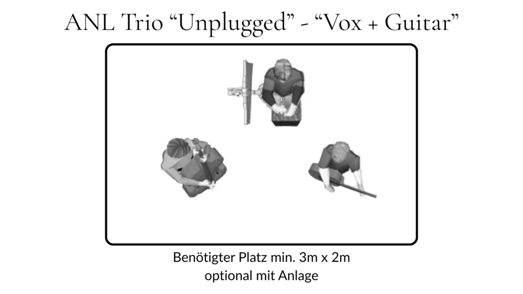 Manche unserer Quartett Besetzungen wie „Mamabeda“ oder „The all Night Longers- Unplugged“ benötigen gar keinen Anlage, da sie unverstärkt spielen können.